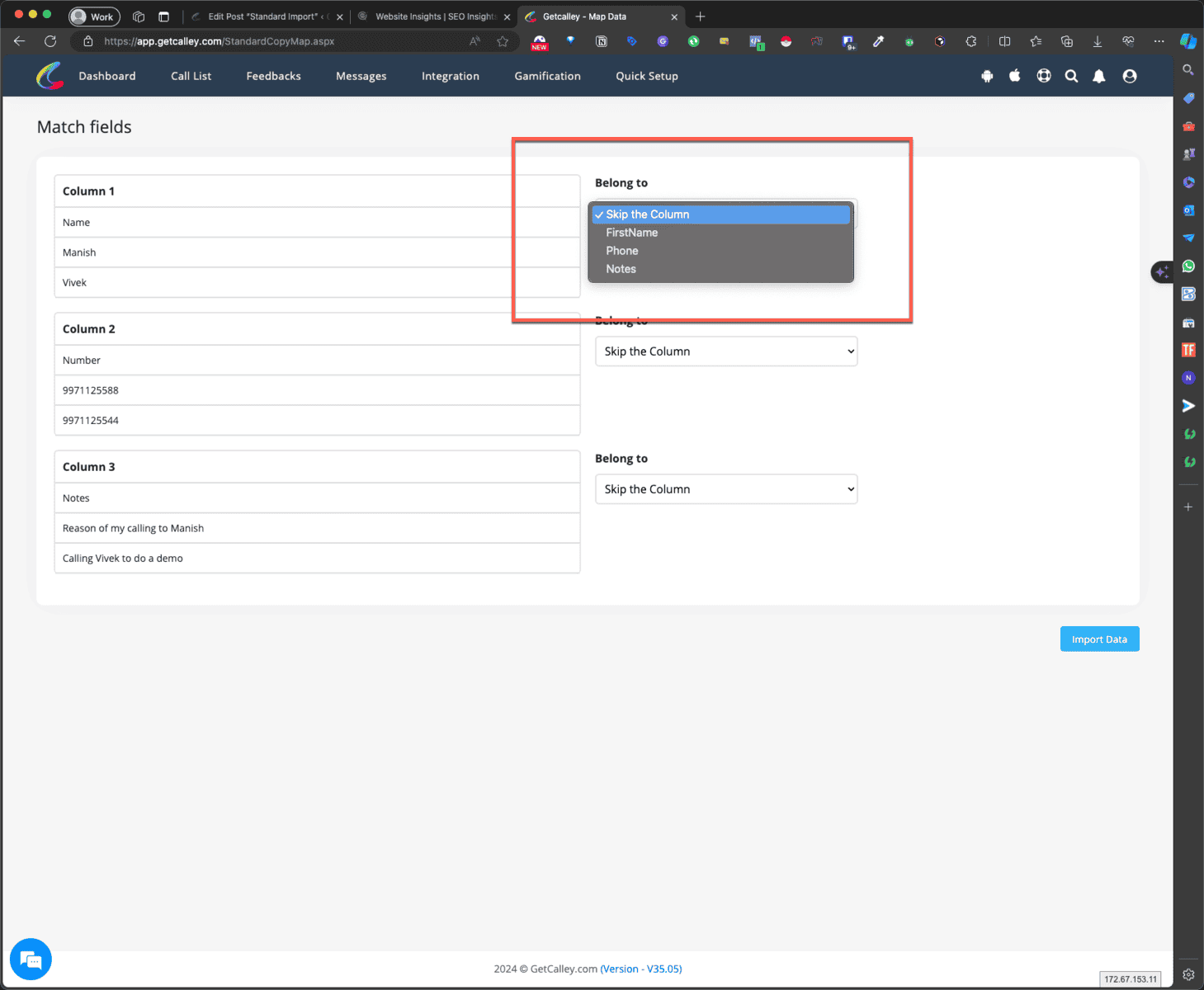 As the mapping is done, please click on Import data to import the leads in your calley web panel.